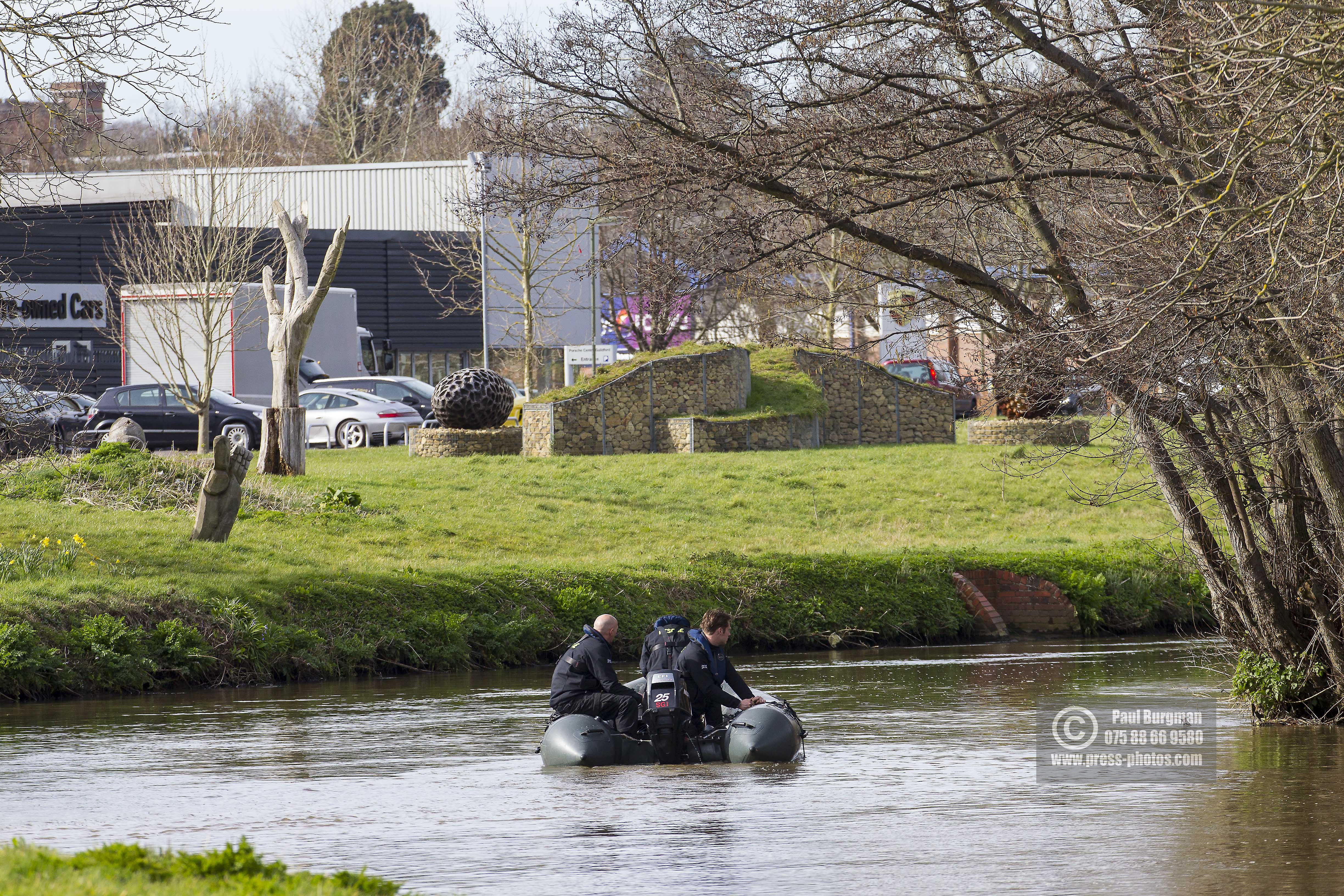 30/03/2016.Police search at Woodbridge Meadows,Guildford, Kayaker missing in River Wey named as 56-year-old Grant Broster. Surrey Police will continue to search the River Wey for a man whose kayak overturned on Monday 28th March.