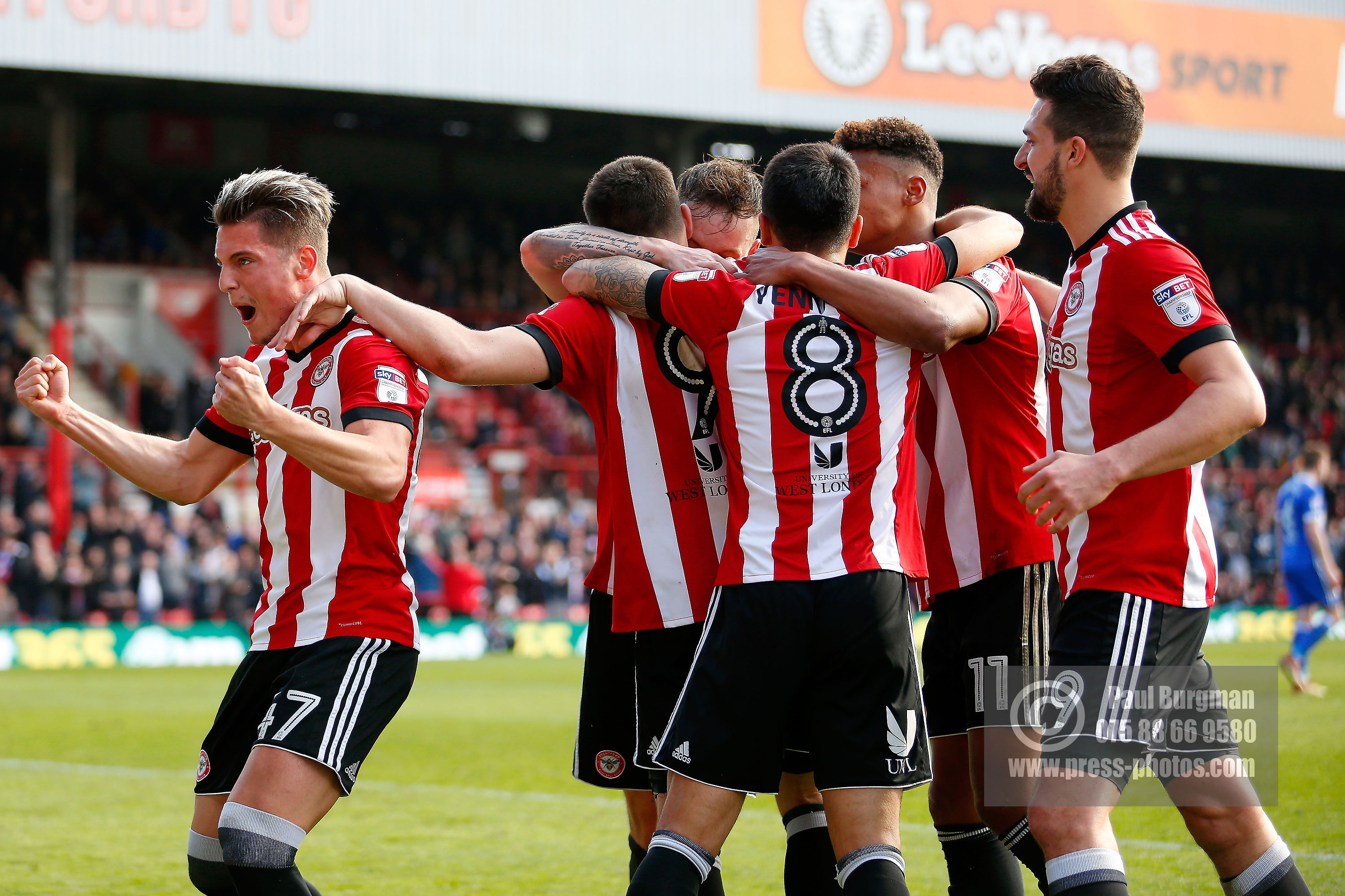 07/04/2018. Brentford FC v Ipswich Town, SkyBet Championship Action from Griffin Park Brentford's Neal MAUPAY celebrates after scoring from the penalty spot