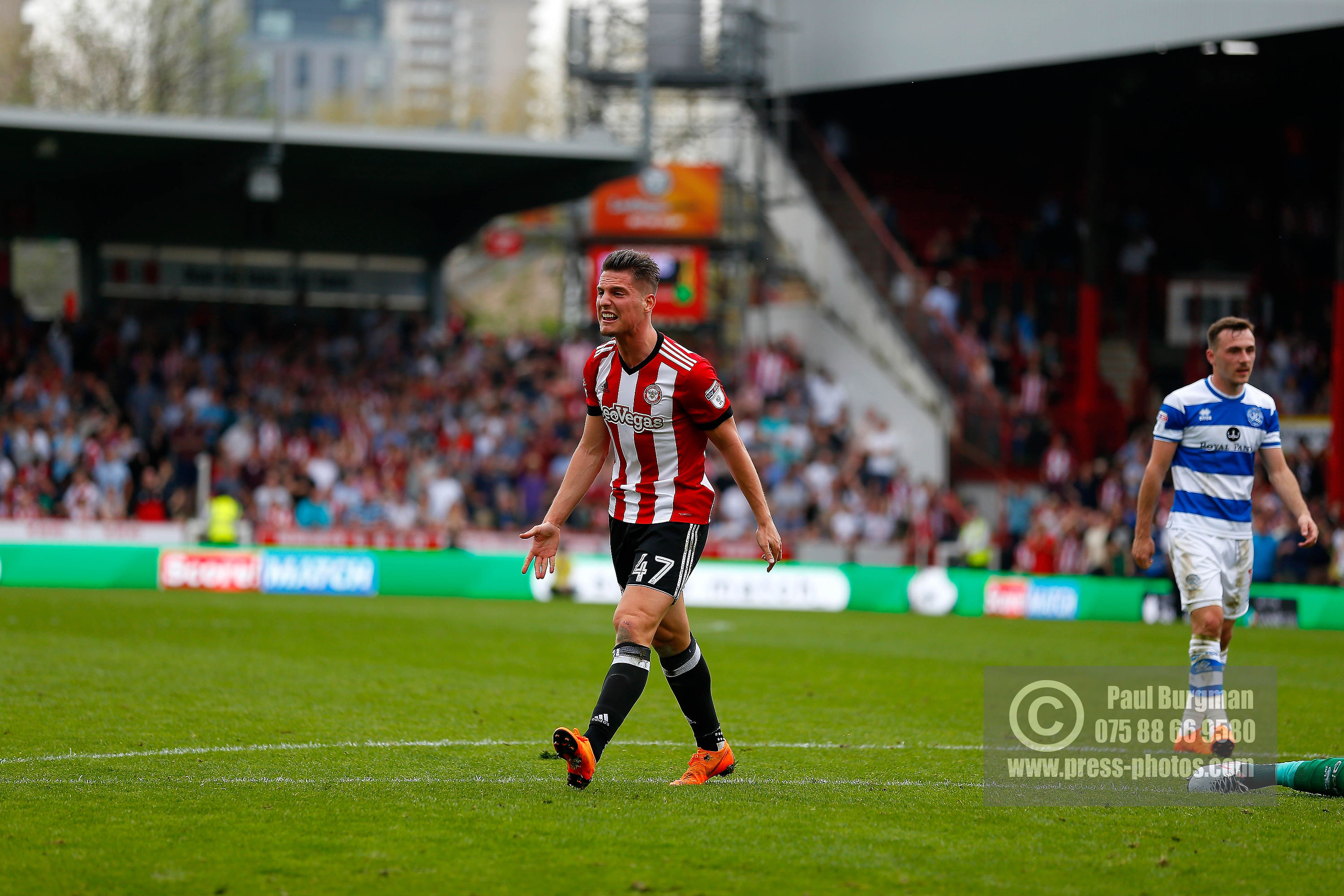 21/04/2018. Brentford v Queens Park Rangers SkyBet Championship Action from Griffin Park. Brentford's Sergi CANOS