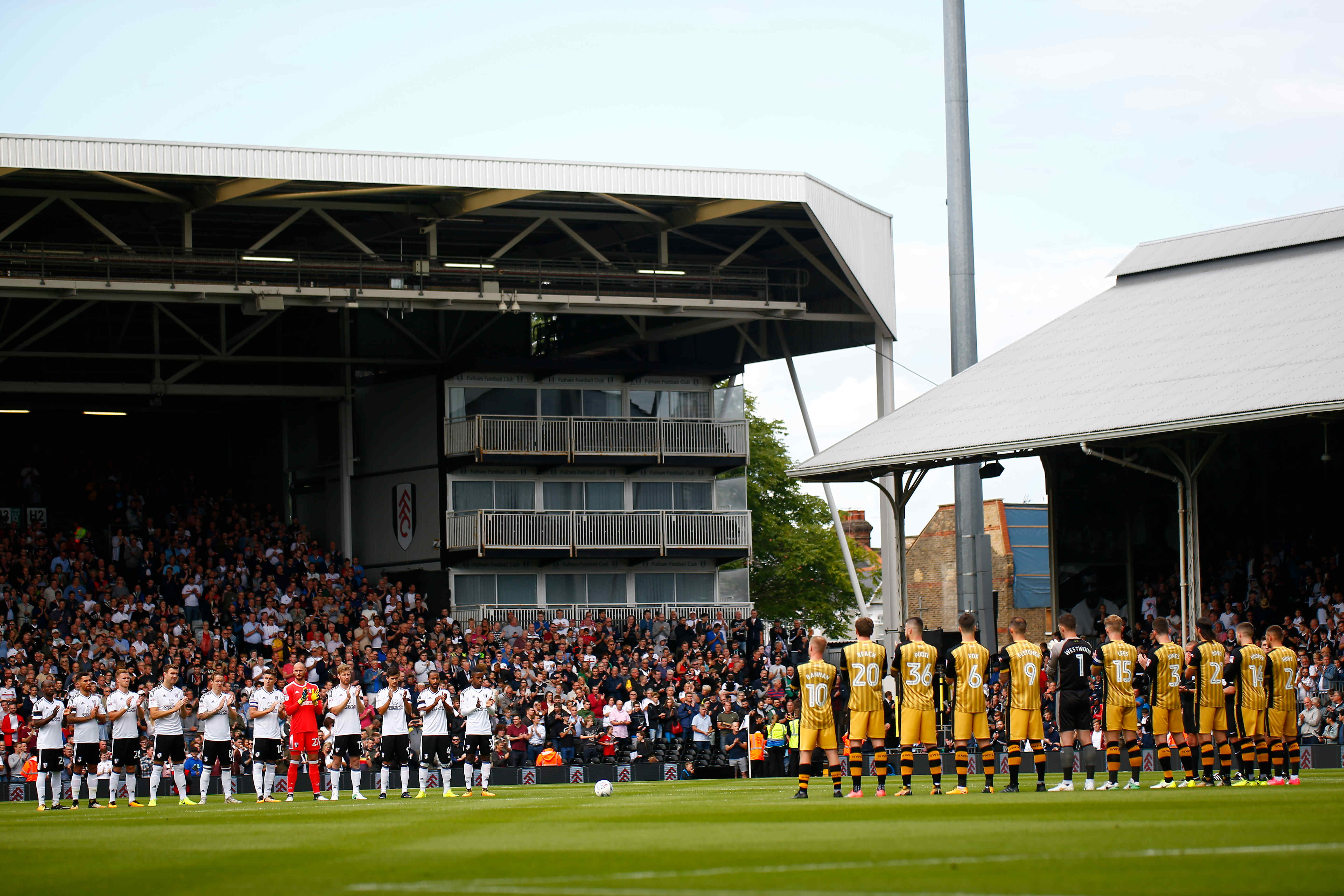 PBP_SAH_WL171663_0493 Album Fulham v Sheff Wednesday Image 14/73 19 August 2017 14:01 SENDTOTMWIRE Original Metadata Camera Maker:Canon Camera Model:Canon EOS-1D X Original Time Taken:19 August 2017 14:01 Shutter Speed:1/1600 sec Aperture:f/2.8 ISO Sensitivity:200 Exposure Compensation:0 EV Metering Mode:Pattern Flash Fired:No Flash Focal Length:133 mm 19/08/2017 Fulham v Sheffield Wednesday. One minutes applause for the Barcelona terror attack