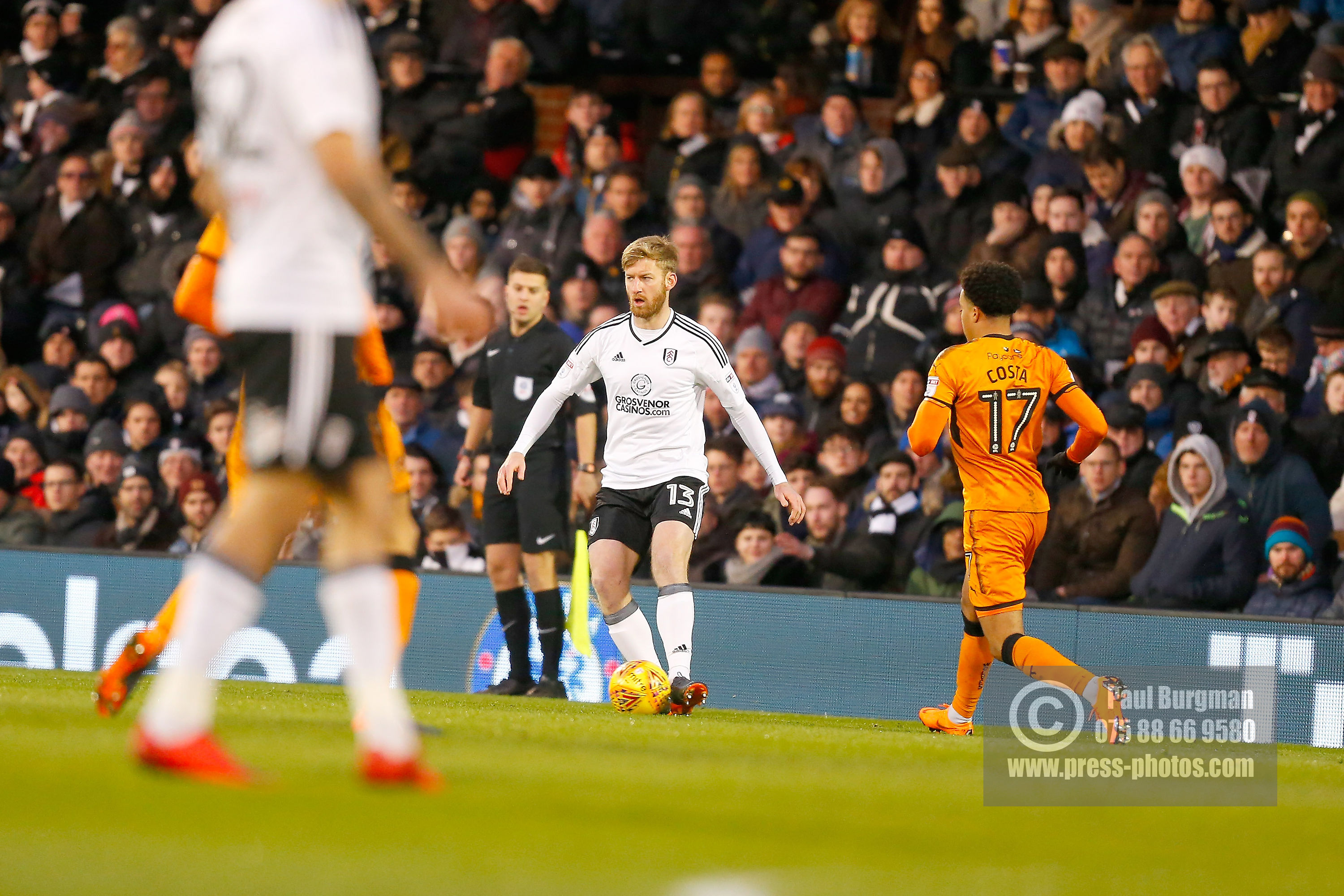 24/02/2018. Fulham v Wolverhampton Wanderers. Action from the SkyBet Championship at Craven Cottage as League leaders visit 5th place. FulhamÕs Tim REAM