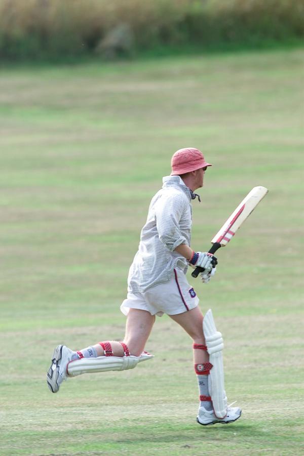 FROM Paul Burgman 27/07/01. Chris Evans who carried his bat for the team in his second innings for Hascombe Vilage's Cricket team